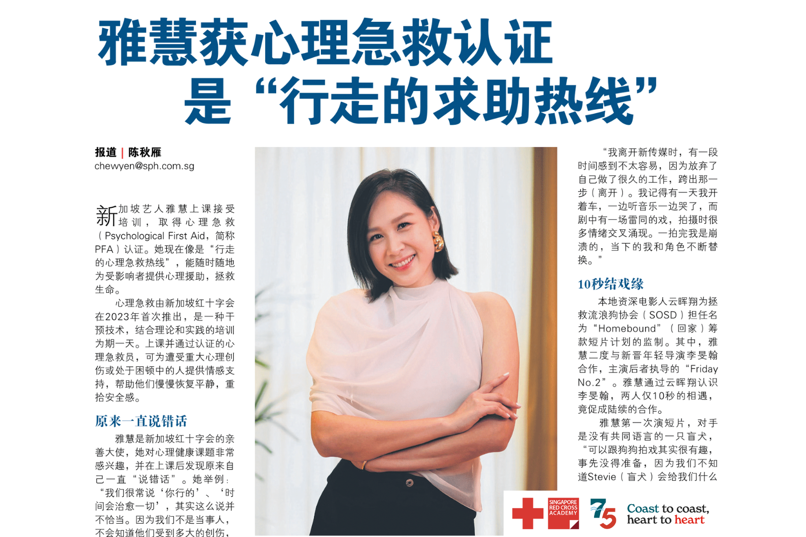 Translated from the original article, ["雅慧获心理急救认证是 “行走的求助热线", Lianhe Zaobao, Pg 5, 10 October 2024". Any errors are the responsibility of the copyeditor.]