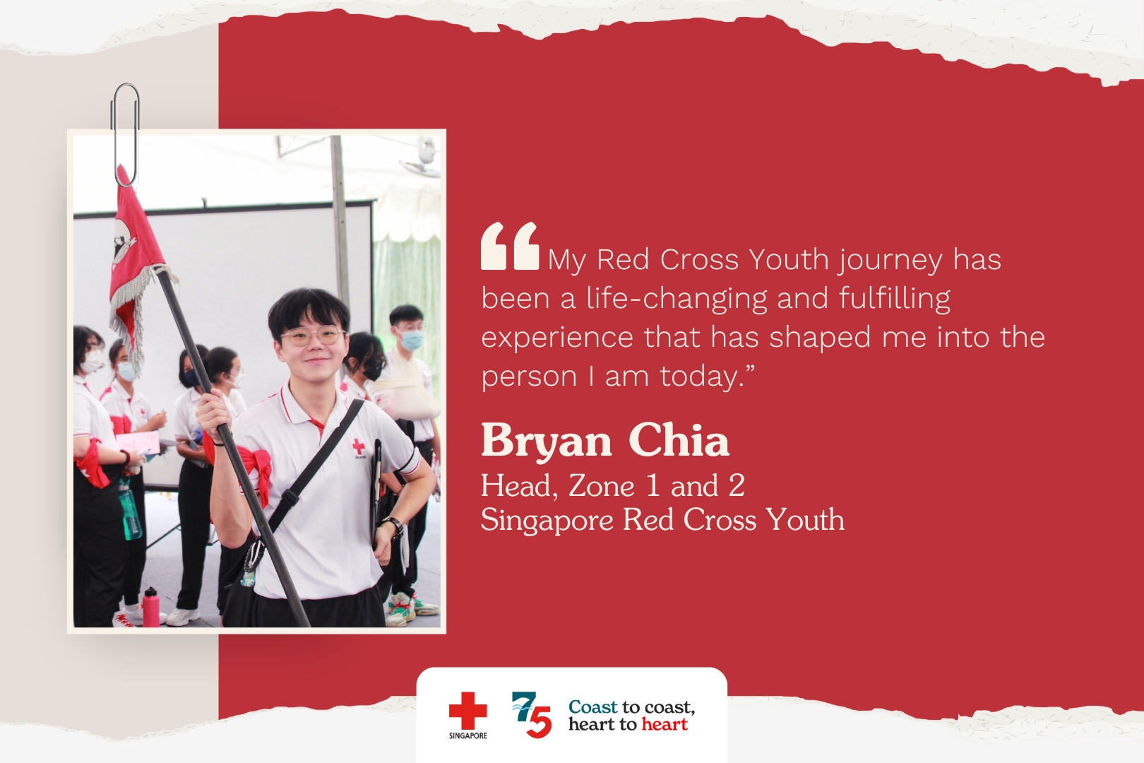 “My Red Cross Youth journey has been a life-changing and fulfilling experience that has shaped me into the person I am today. I hope to continue doing what I am passionate about, further building on our existing strong culture and practices targeted at providing our juniors with more fulfilling experiences than my positive experiences from RCY,” said Bryan enthusiastically.
