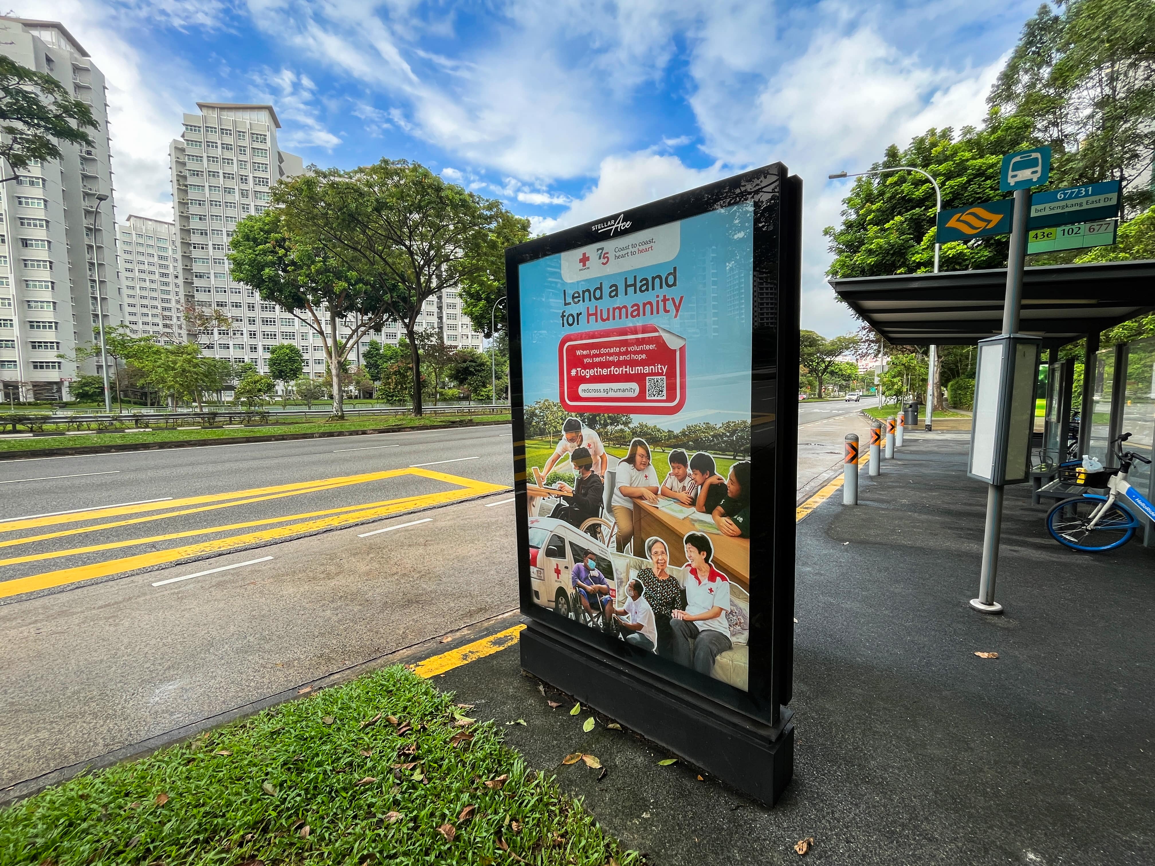 Keen to spot our advertisements? Look out for SRC and Singapore Red Cross Academy (SRCA)’s messaging at bus stops throughout the island or at MRT stations like City Hall, Bishan, and more. And if you come across our fundraising ads — scan the QR code to give!