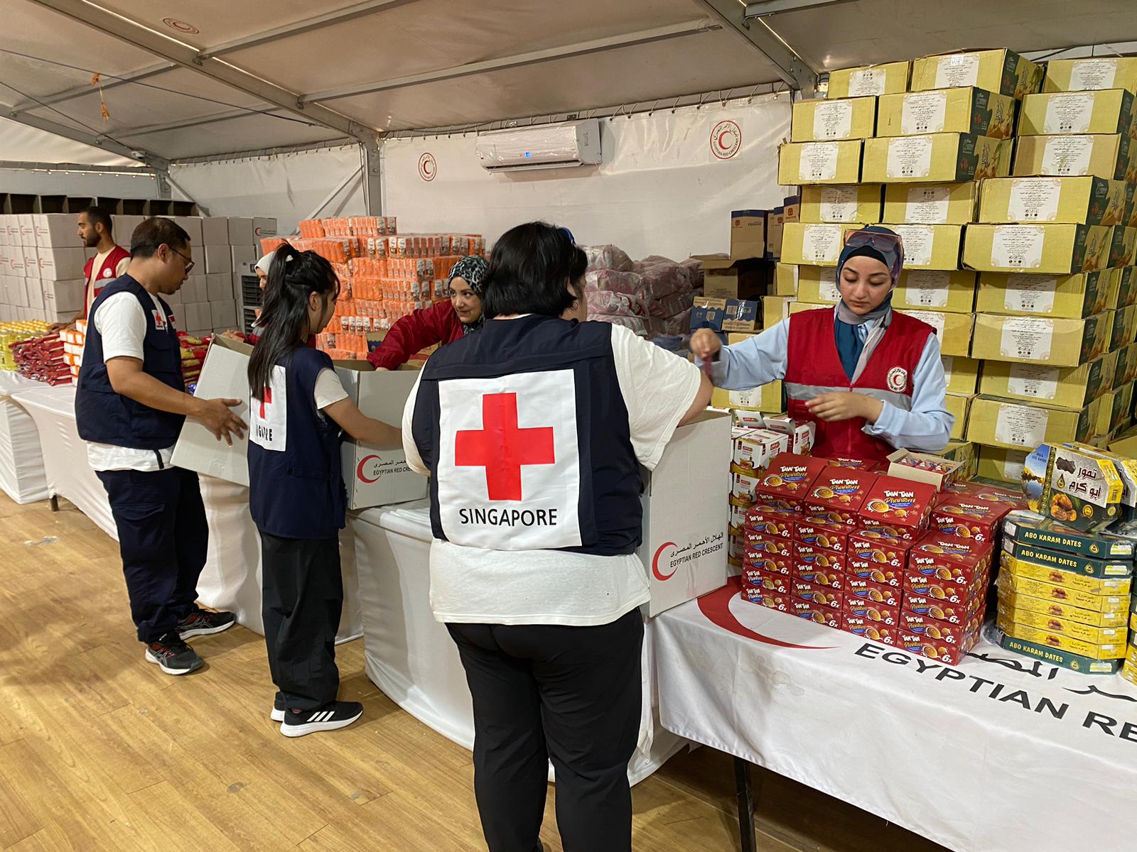 Bolster ERC’s relief operations with the deployment of SRC volunteers, including an operations coordinator to be stationed in Egypt for 1 to 2 months to oversee the coordination of SRC’s response activities. This is the second of such long-term deployment that SRC has activated in Egypt to ensure that our humanitarian response efforts are well-coordinated. The first long-term deployment took place last year from October to November, where a staff was deployed to coordinate SRC’s first tranche of support worth USD 200,000. The operations coordinator for the second deployment will monitor and share the latest updates, which would shape future response activities, and coordinate the short-term deployment of 8 SRC volunteers from 22 to 28 April. The team will be involved in the sourcing of food supplies and packing of the food parcels, and other relief items destined for Gaza. If the opportunity arises, the volunteers may visit programmes and operations organised by ERC for Gaza, including the Humanitarian Kitchen, as well as any other humanitarian initiatives for Gaza taking place within Egypt.