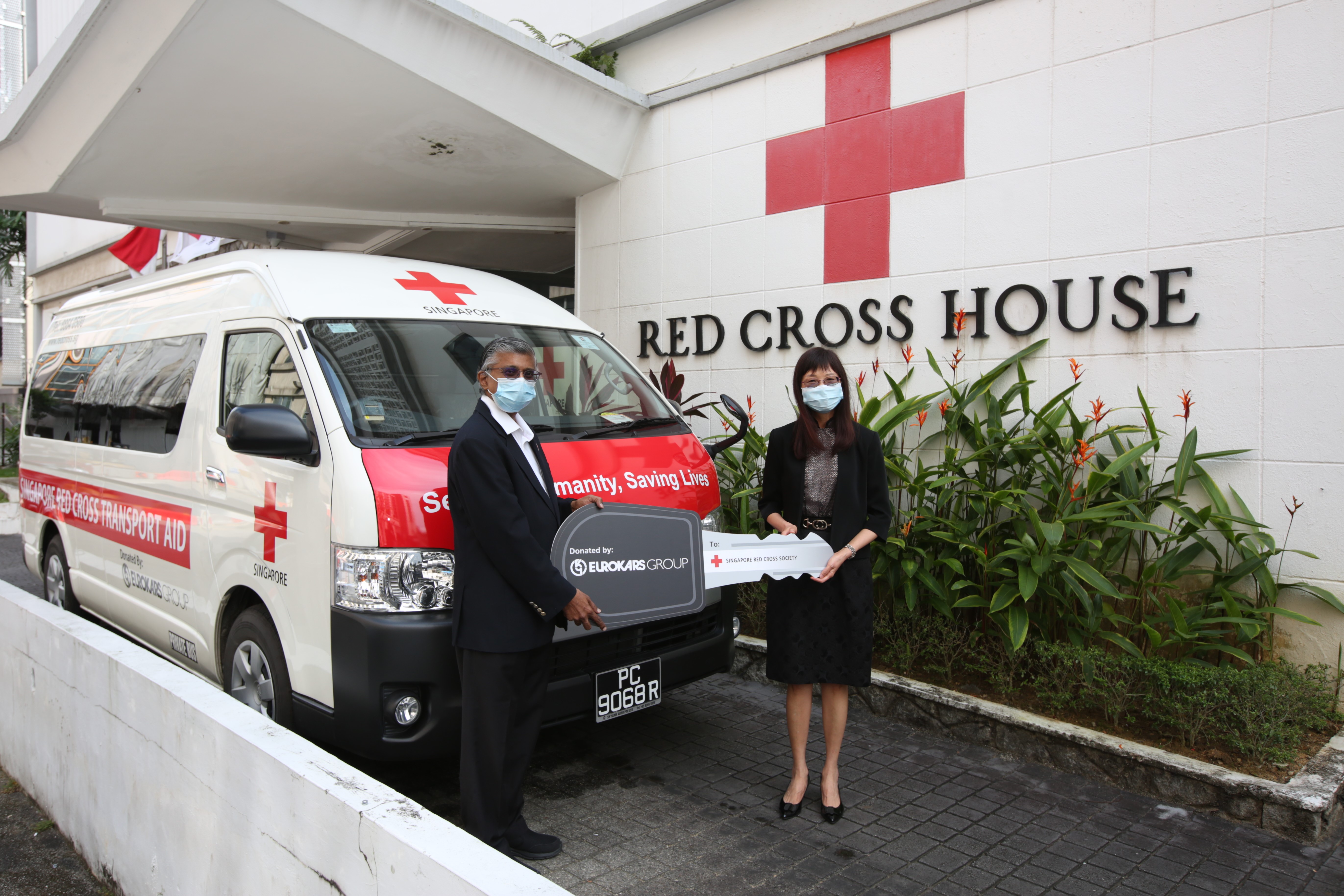 Photo: Mr Benjamin William, Secretary General and CEO of Singapore Red Cross, and Miss Ong Lay Ling, Group Managing Director of Eurokars Group, officiating the handover ceremony.