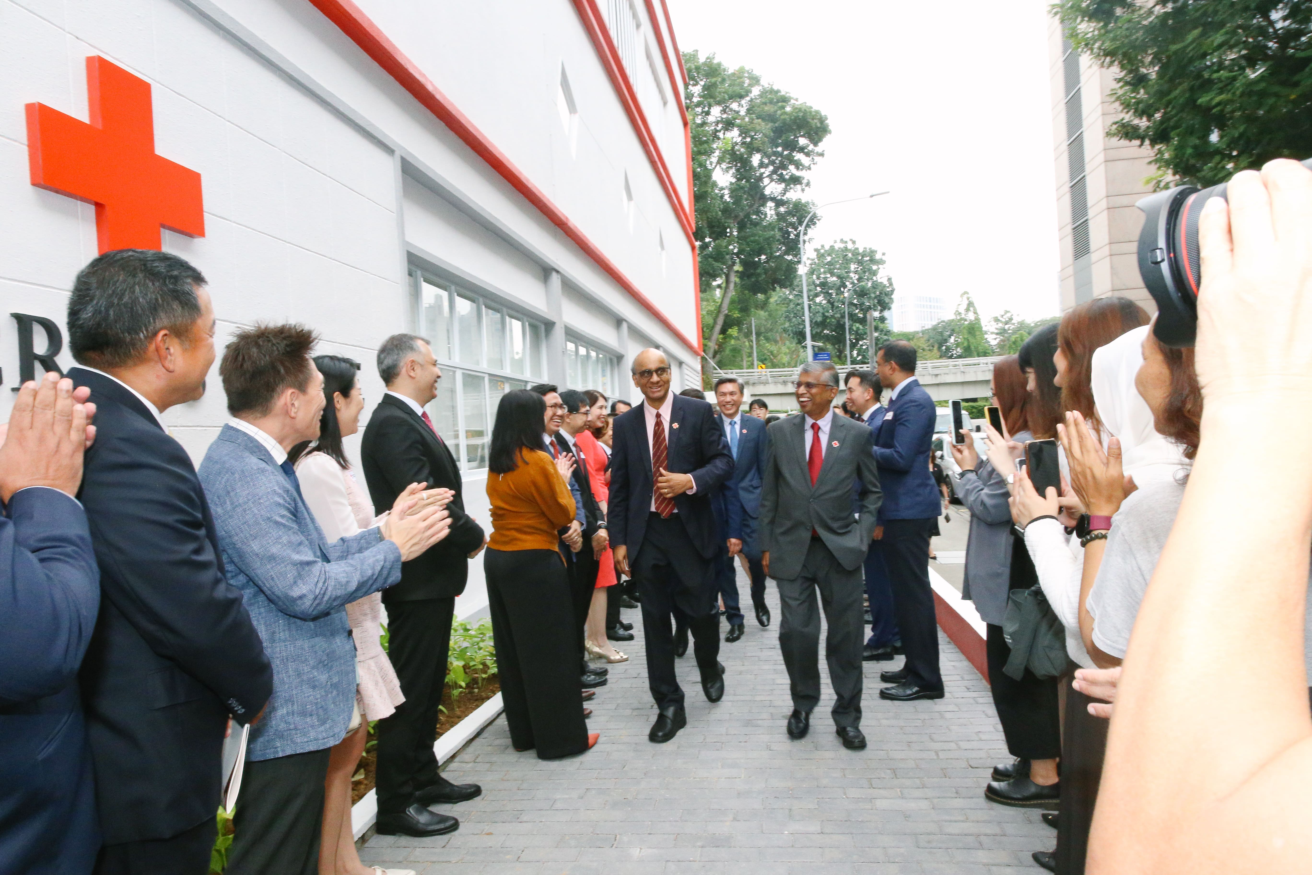 Following the Singapore Red Cross Awards 2023 ceremony, Guest-of-Honour and Singapore Red Cross (SRC) Patron, President Tharman Shanmugaratnam officiated the opening of the refurbished Red Cross House at a ribbon-cutting ceremony at the entrance on 3 October. He was accompanied by the SRC Chairman, Mr Tan Kai Hoe and SRC Secretary General and CEO, Mr Benjamin William.