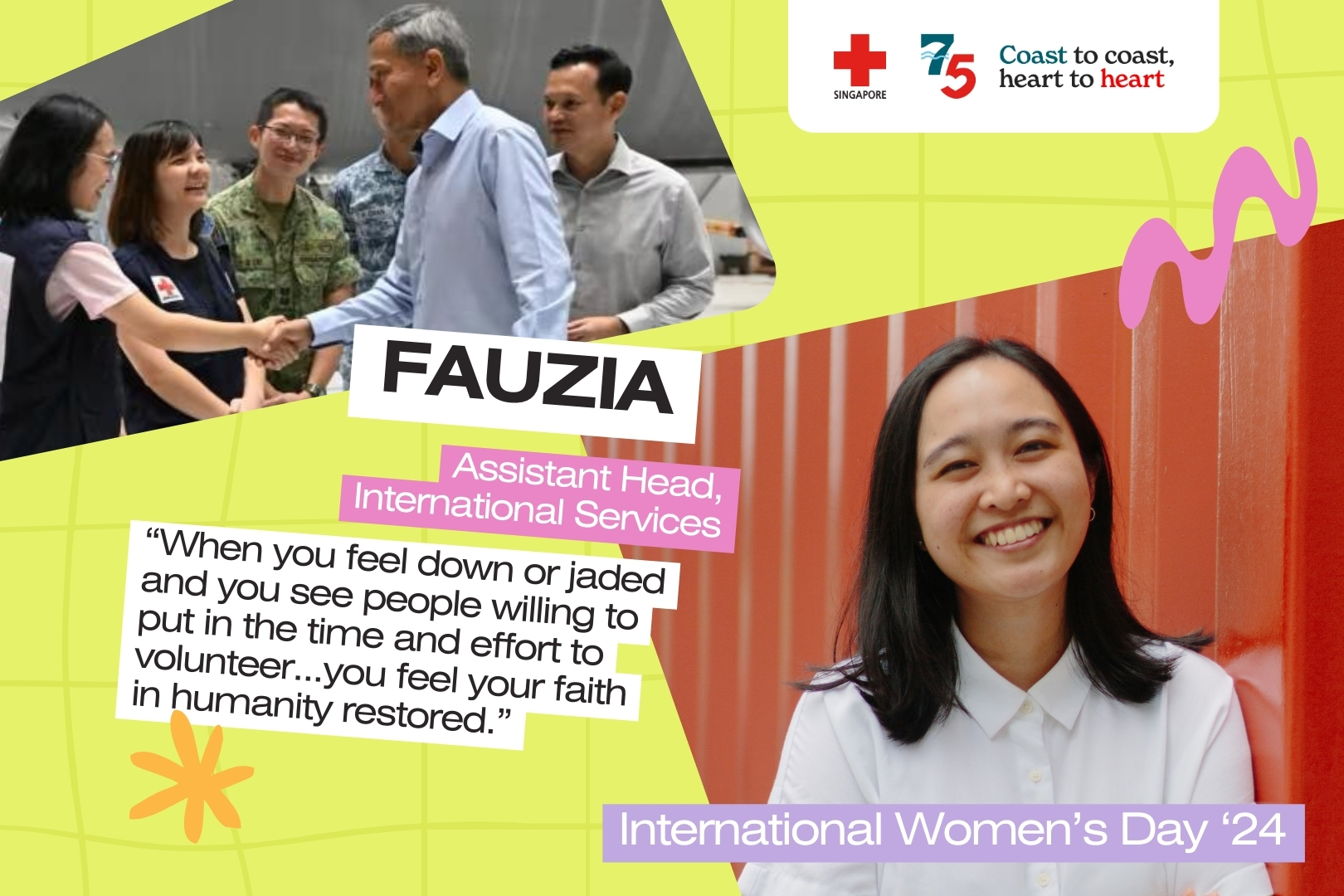As we commemorate International Women’s Day, we cast the spotlight on four women who have been working with the Singapore Red Cross (SRC). Keen to learn about humanitarian work in a non-profit organisation, Fauzia Amalia joined the Singapore Red Cross’ (SRC) International Services department, a subset of the Global Engagement (GE) department as an intern in 2019. Her positive internship experience spurred her to apply for a permanent position as an Executive at GE when a vacancy was available. Since then, Fauzia has played a role in providing emergency disaster relief, early recovery and rebuilding while ramping up the capacity of volunteers and employees locally and regionally. Over the years, she has proven her capability and risen through the ranks to become the Assistant Head of the department. She shares her aspirations for the department.