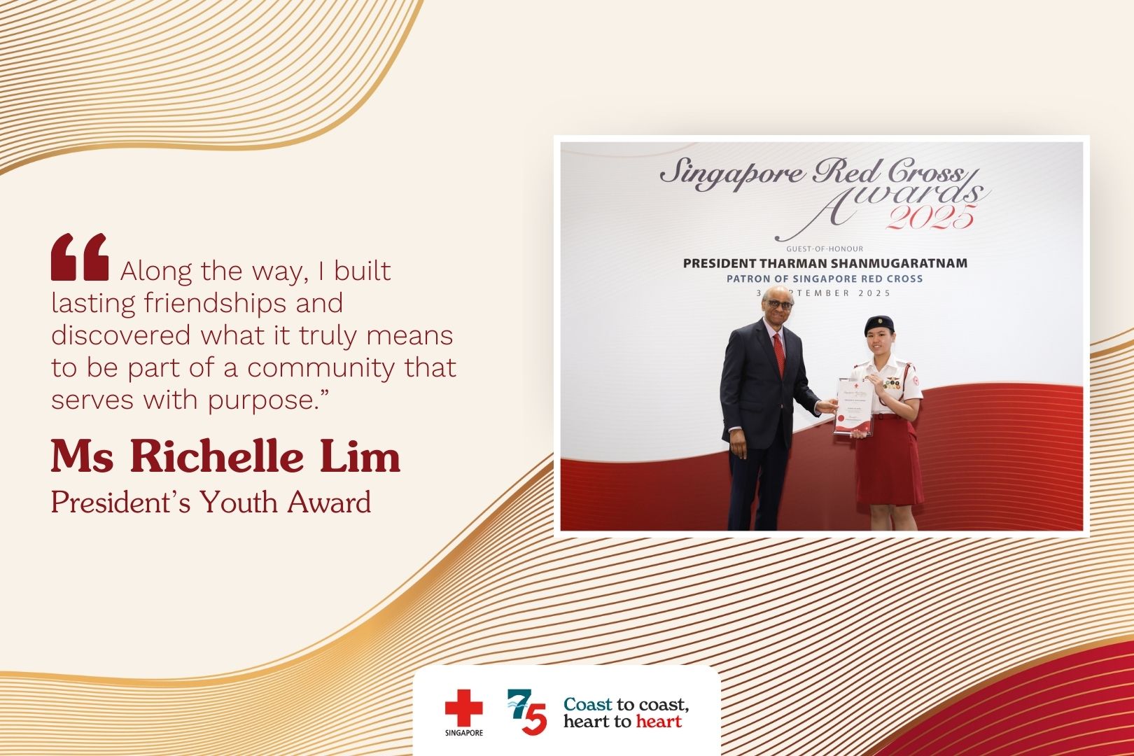 “Receiving this award fills me with both honour and gratitude. RCY has given me a once-in-a-lifetime opportunity, not just to grow as a leader, but as a person. I owe so much to the people who have been with me on this journey: my Secondary Four batch mates who always had my back, the Volunteer Instructors who guided me, the Youth Officers who taught me lessons I’ll carry for life, and the cadets of Serangoon Secondary School RCY. You are the reason I continue to lead with pride.”