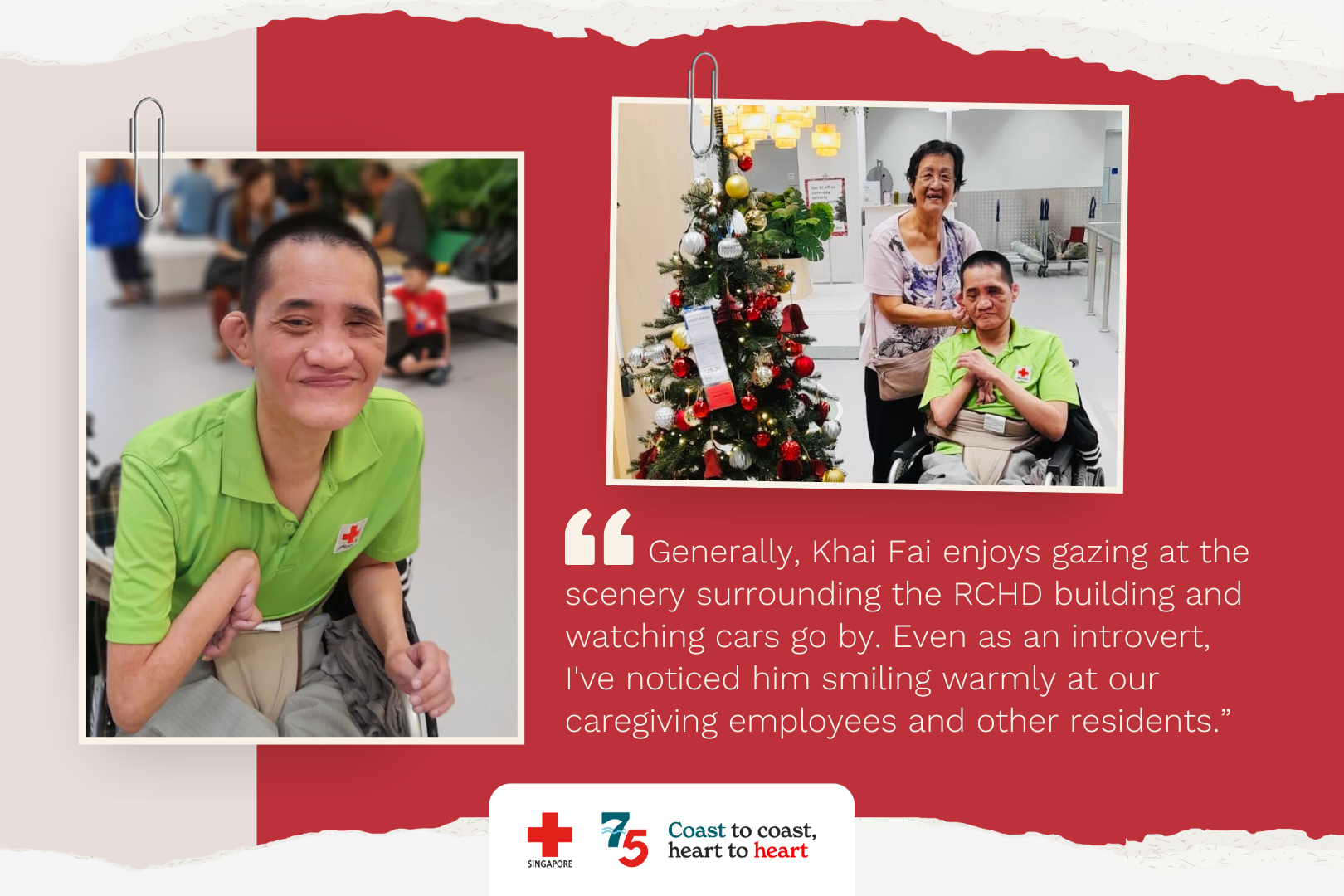 Since Khai Fai enrolled in the RCHD as a resident in May 2024, Khai Fai has benefitted from RCHD's holistic professional care and therapy programmes specially tailored to develop his physical, social, recreational and daily living skills.